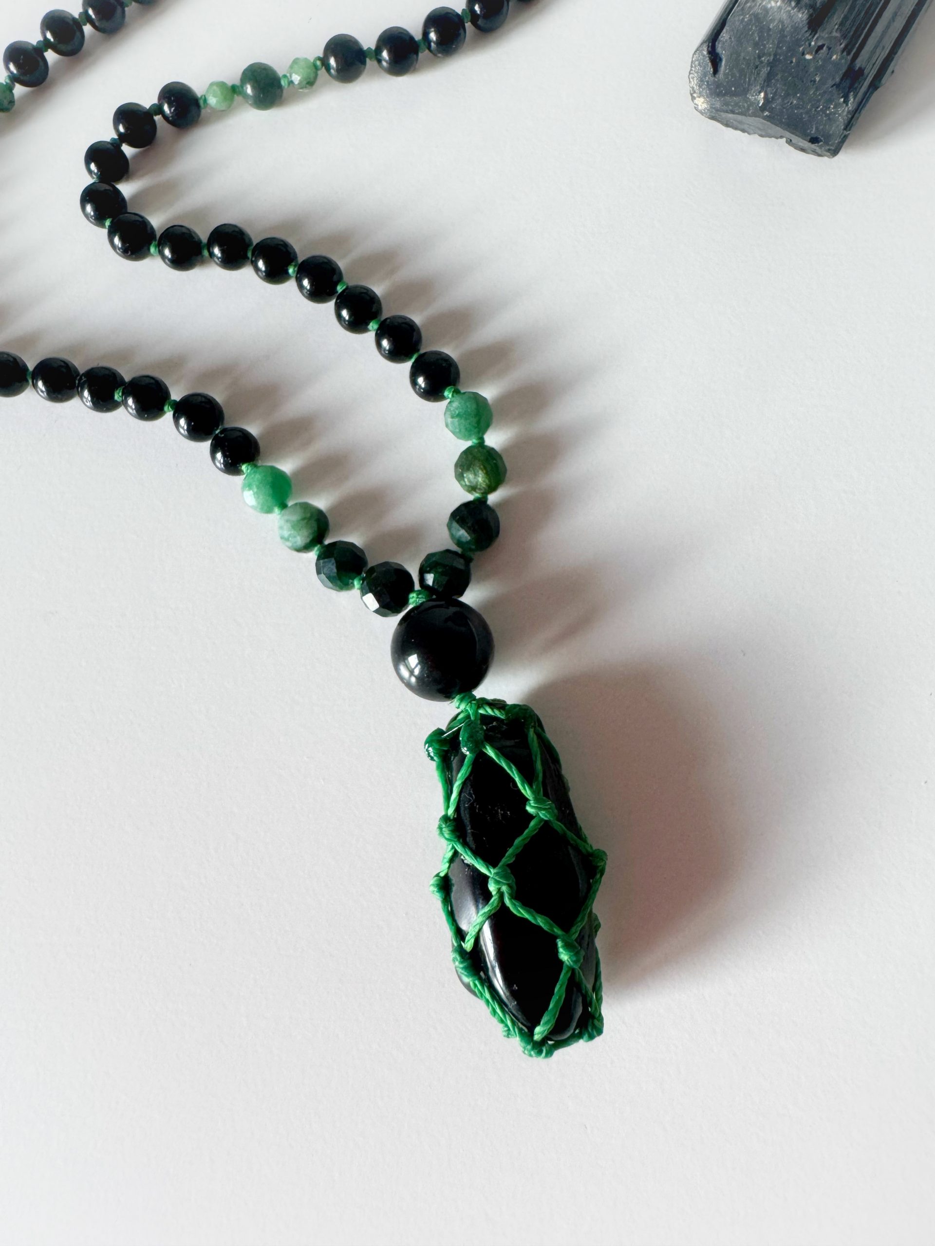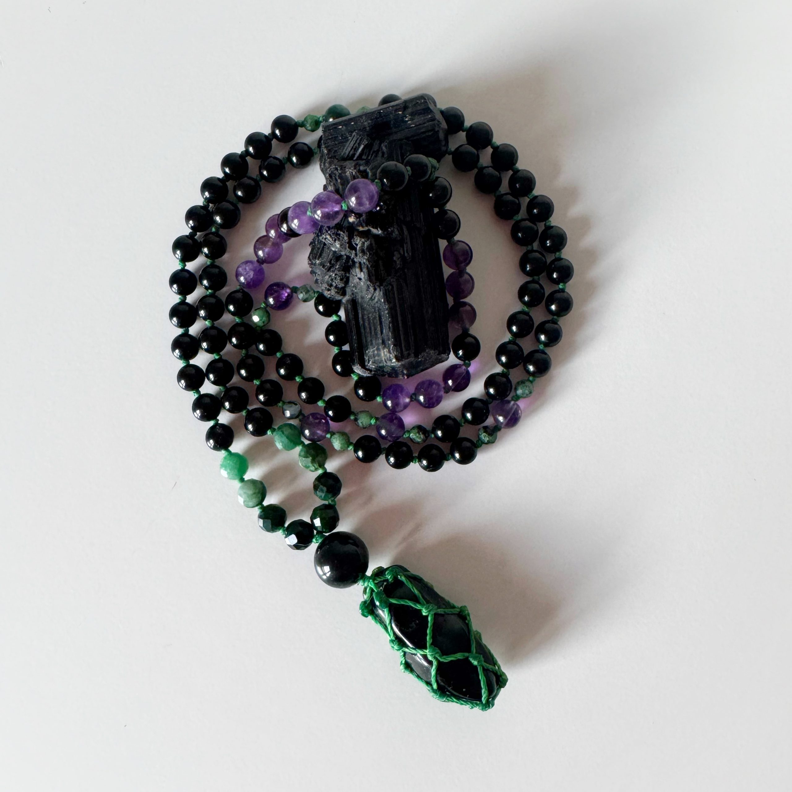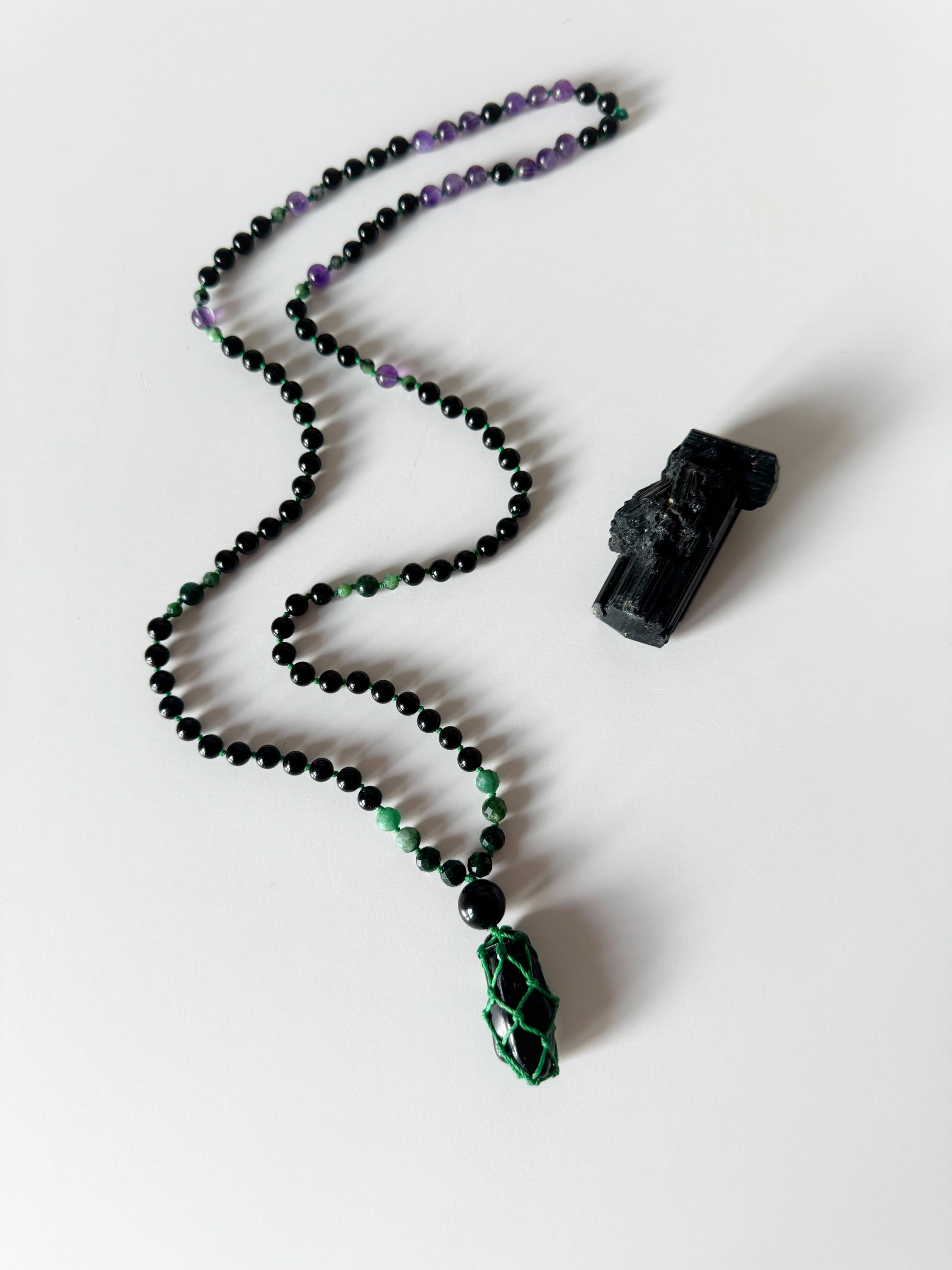 Kette: Schwarzer Turmalin, Smaragd, Amethyst