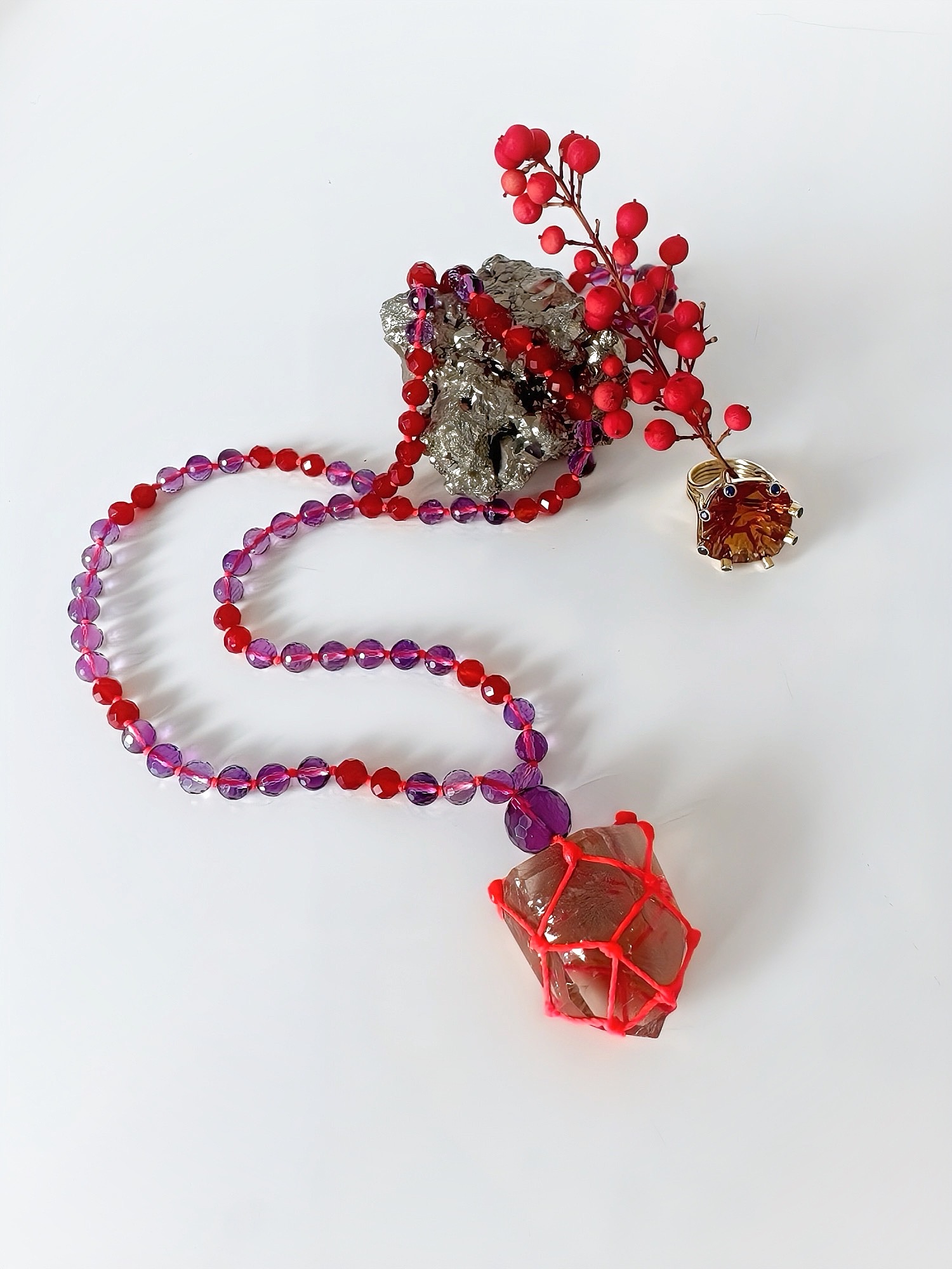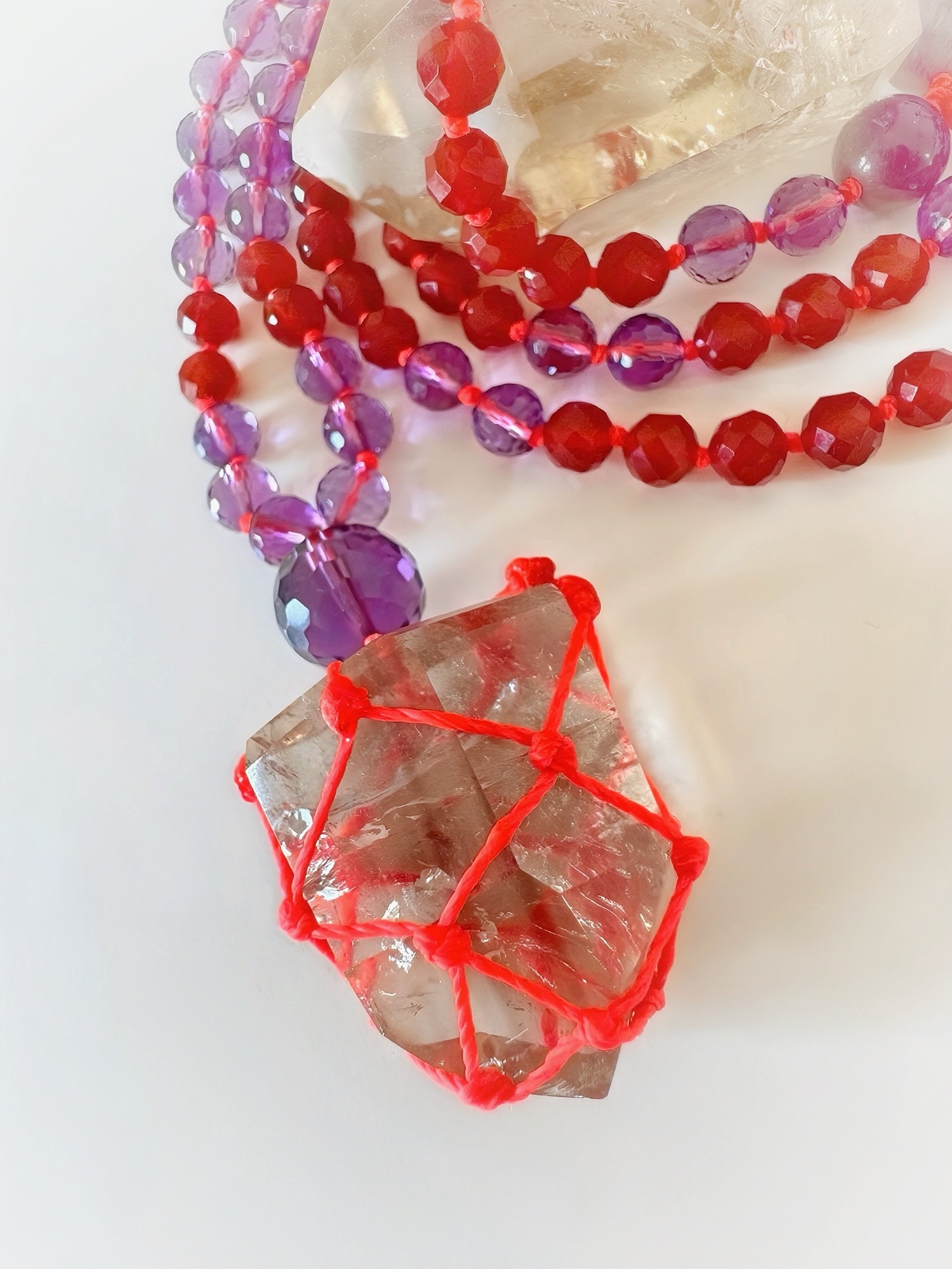 Kette: Uruguay Amethyst, Karneol – (Facettiert)